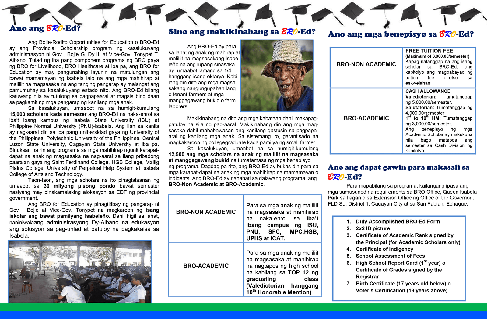 - The BRO for Education is the Provincial Scholarship Program of the Provincial Government of Isabela pursuant to Ordinance No. 09, s. 2015 also known as “An Ordinance Further Amending Ordinance No. 04, series of 2008, entitled, An Ordinance Establishing a Revised Provincial Scholarship Program”